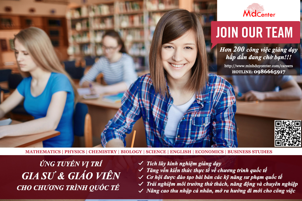 MdCenter trực thuộc Công ty TNHH Đầu tư và Phát triển giáo dục Minh Duy luôn dành sự chào đón nồng nhiệt nhất cho những cá nhân có hoài bão và ước mơ lập nghiệp trong lĩnh vực giáo dục! Chúng tôi xin chia sẻ các vị trí công việc để tìm các ứng viên phù hợp.