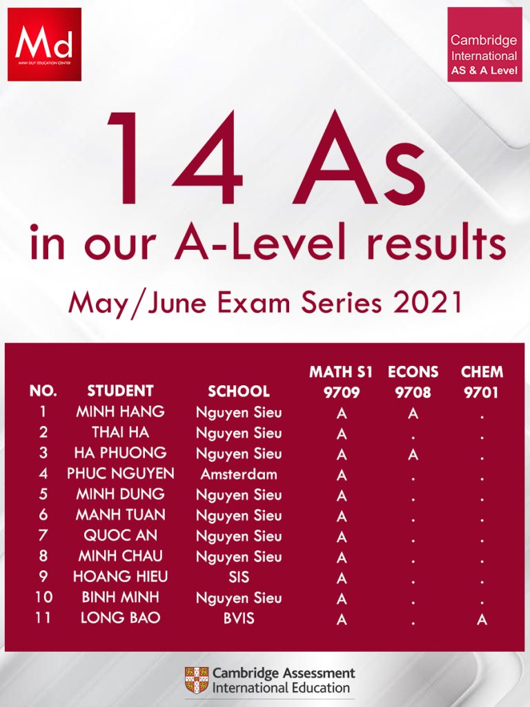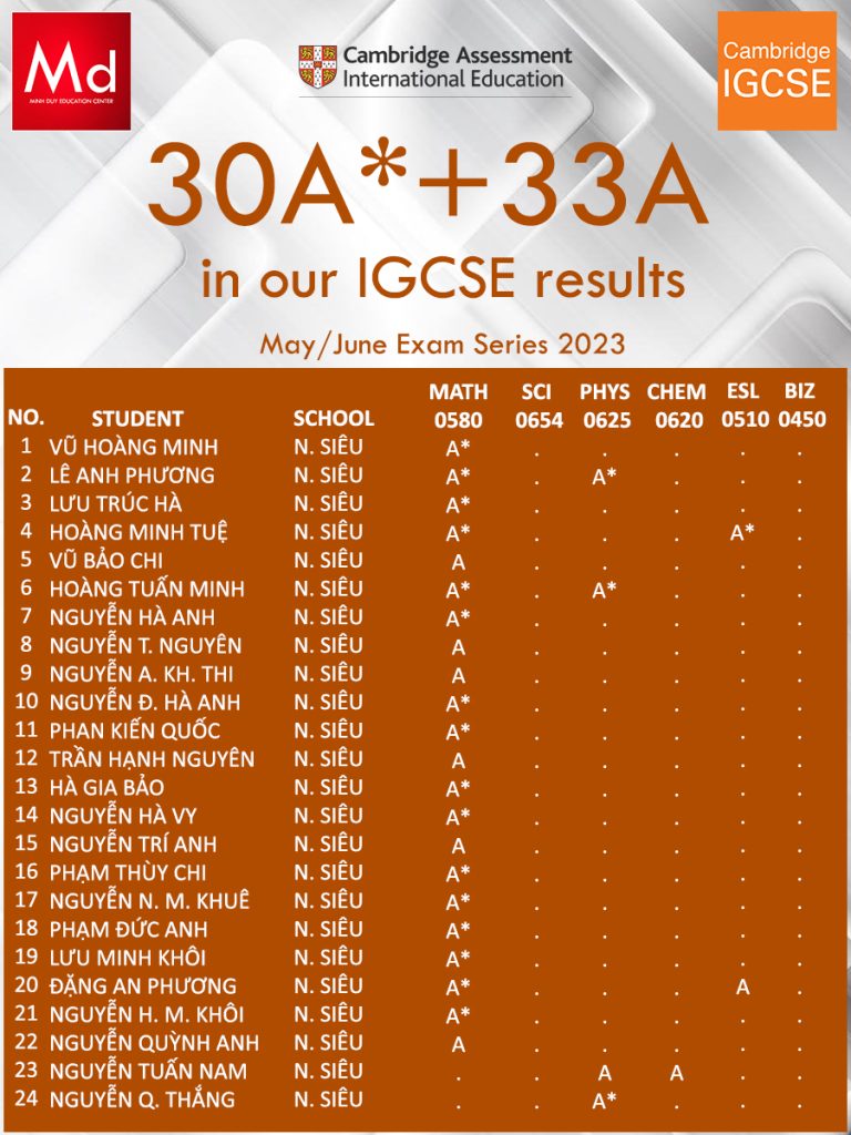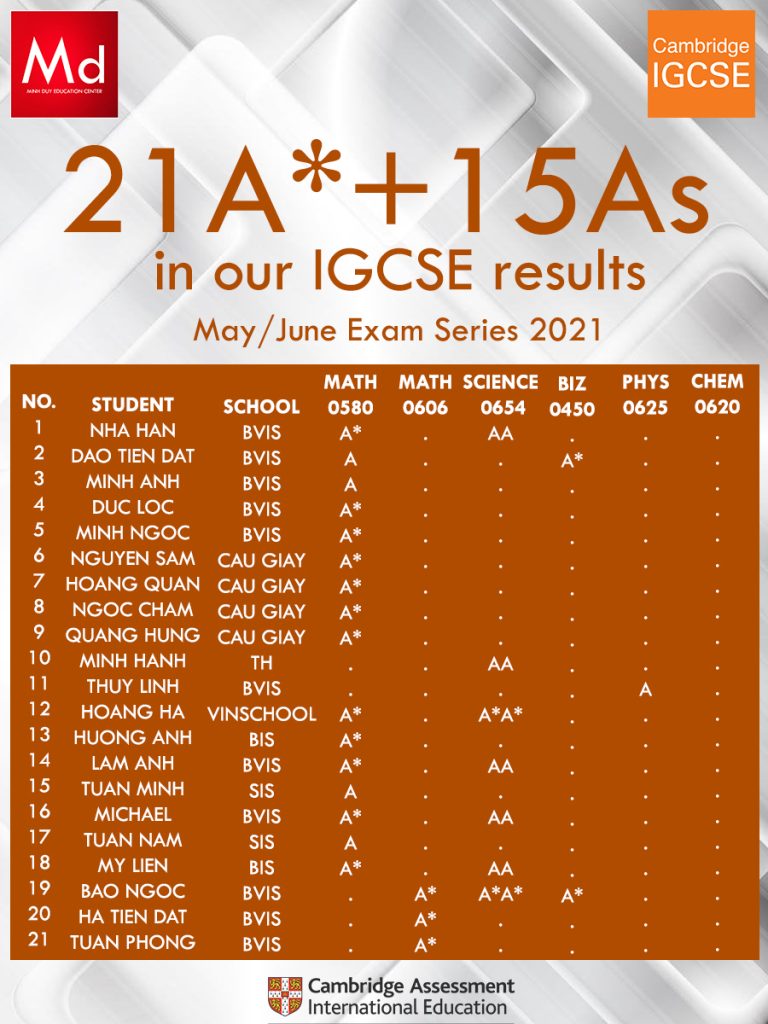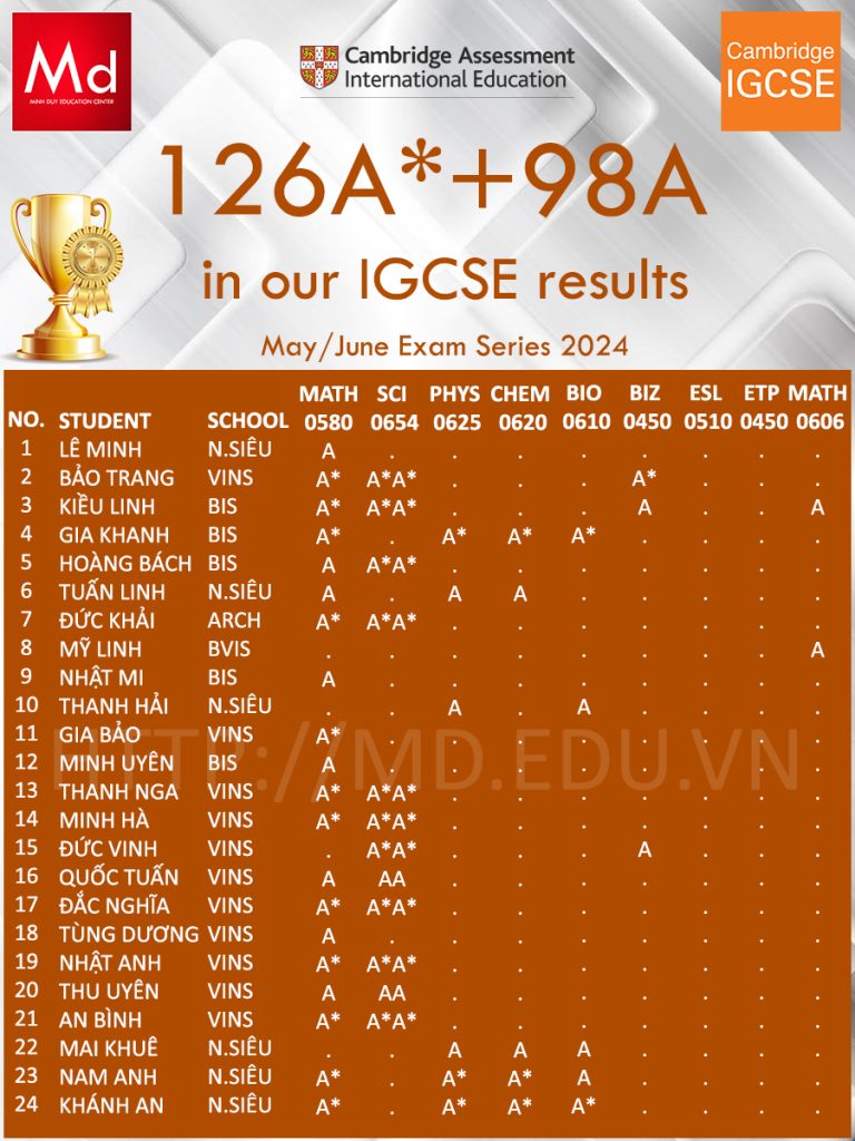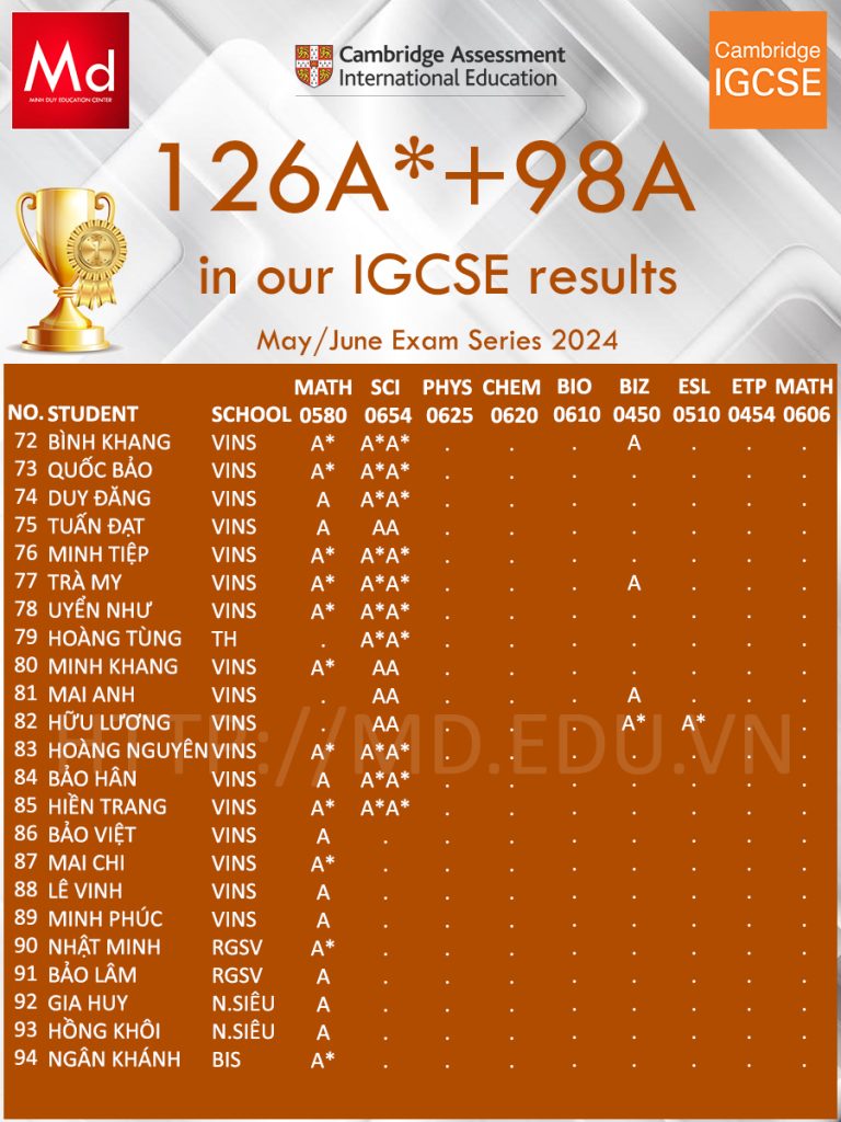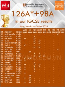 Thành tích đào tạo của bộ phận gia sư quốc tế Minh Duy Private Tuition, tiền thân của William Global Academy.
