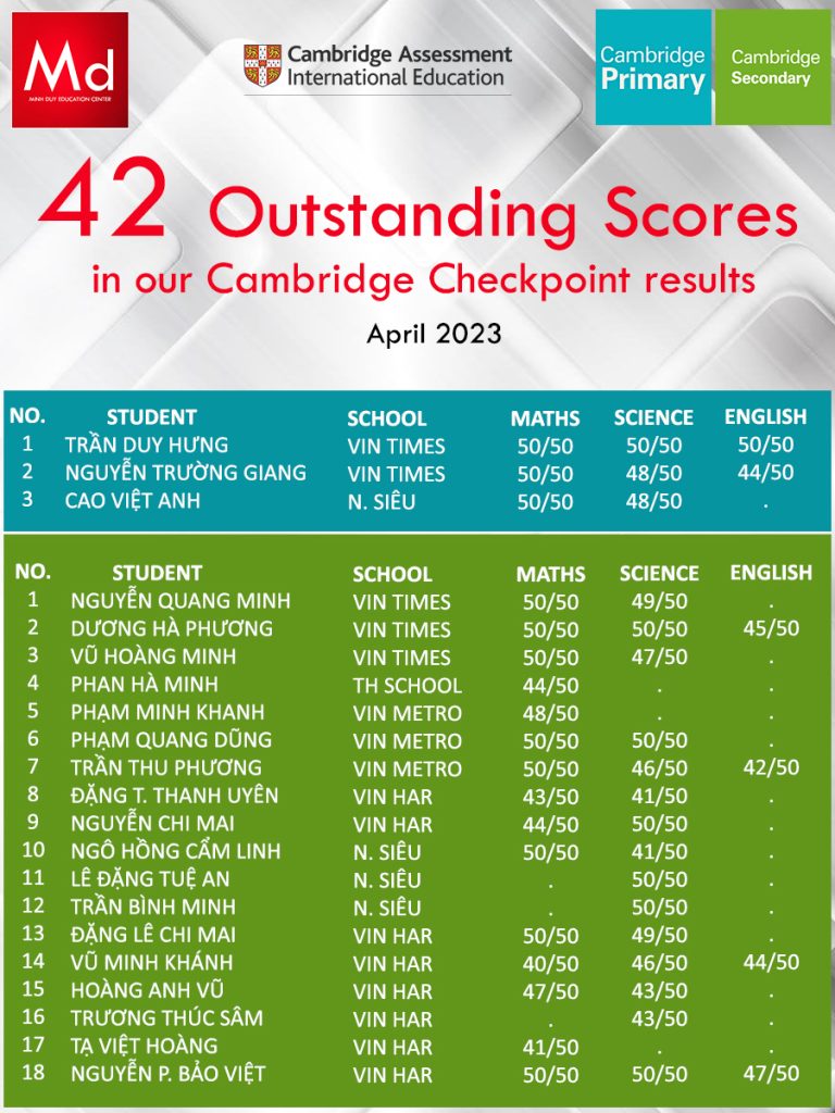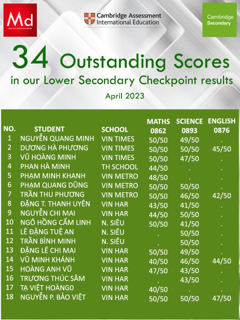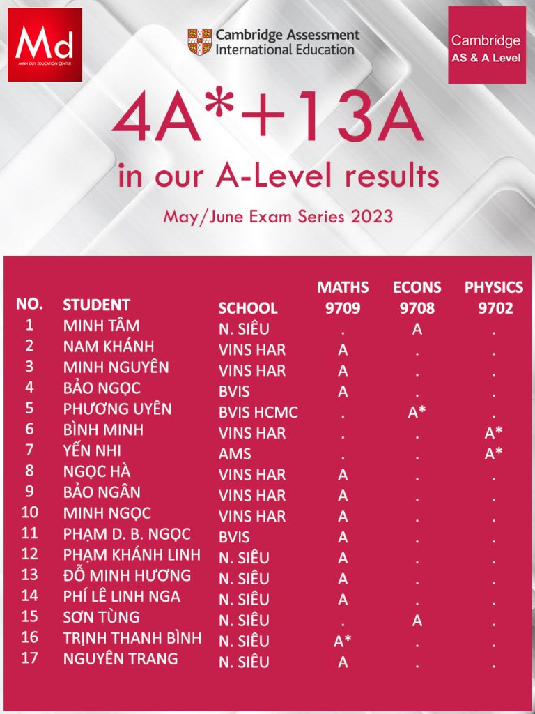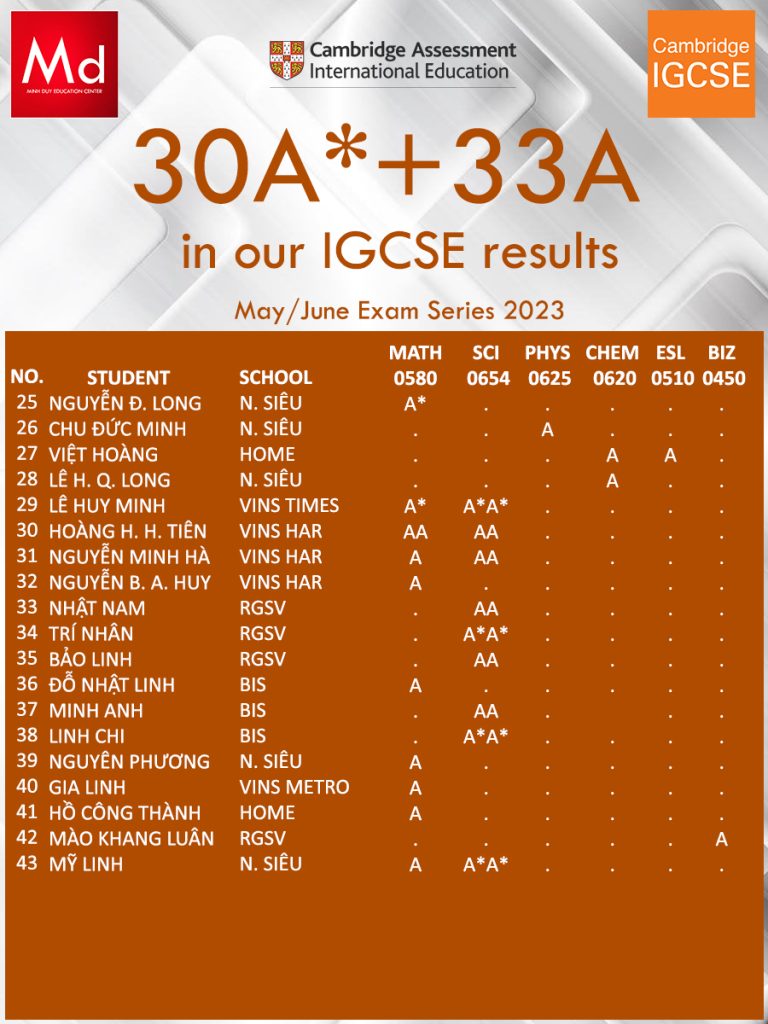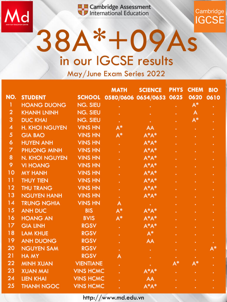 Thành tích đào tạo của bộ phận gia sư quốc tế Minh Duy Private Tuition, tiền thân của William Global Academy.